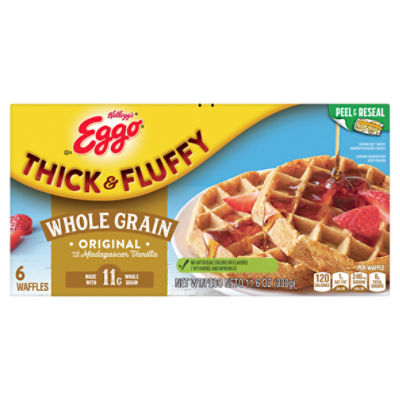 Whole grain waffles frozen. Kelloggs Eggo Thick Fluffy Whole Grain Original Waffles. Convenient and easy to prepare. Wake up and greet the day with the feel-good taste of Kelloggs Eggo Thick Fluffy Whole Grain Original Waffles made with 11g of Whole Grain and Madagascar vanilla.