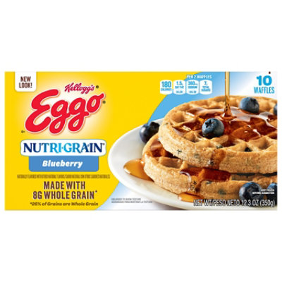 Kelloggs Eggo Thick Fluffy Whole Grain Blueberry Waffles made with 11g of Whole Grain are made to bring warmth and smiles to busy mornings. Crafted with delicious ingredients and 7 vitamins and minerals our waffles are the perfect balance of crispy fluffy. Up the tasty fun with toppings like butter and syrup preserves and whipped cream or go savory with fried chicken or sausage.