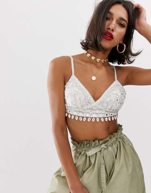 Shell crop top. Features inner bandeau for support. Carli Bybel x Missguided Gray Bardot Crop Top. You can use this tutorial.